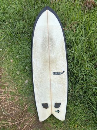 Tabla de surf tipo fish, twin fin, ideal para olas pequeñas y medianas. Su diseño permite una remada fácil y maniobrabilidad. Muy buena calidad de materiales. Prácticamente nueva. Recogida en mano en Fuertevfntura. 5'7" x 19 3/4" x 2 3/8"