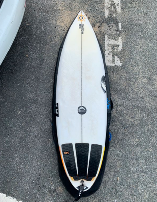 Tabla de surf modelo Fish de Luke Studer, tamaño 5.5. Super liviana - Diseño blanco con detalles en negro. - Cola tipo 'swallowtail'. - Logos de la marca SIC Flow. 29l Muy Poco uso