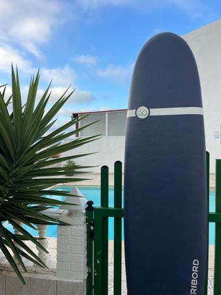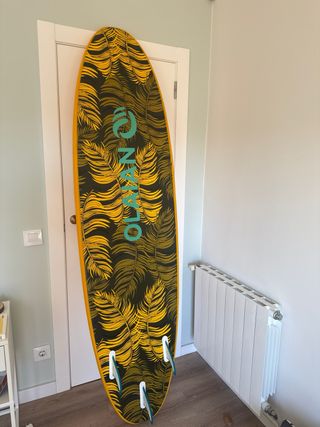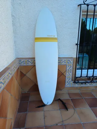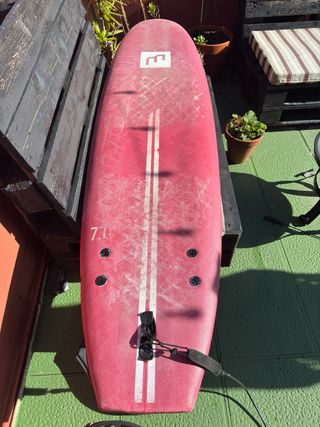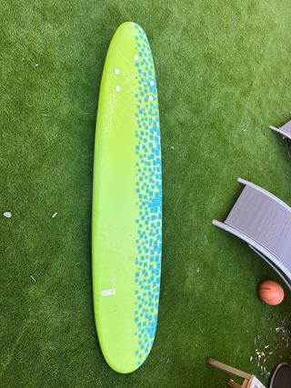 Buscas tu primera tabla para dejar de alquilar? Vendo esta Softboard de 7 pies (210 cm x 55 cm) de la marca Tribord (Decathlon). Es un modelo recomendado para empezar por su gran estabilidad y flotabilidad (aprox. 60 litros). Estado de la tabla: La tabla NO es nueva y tiene signos estéticos de uso normal (algunas marcas en el corcho, de cera), pero de estado está muy bien, tiene muchísima vida por delante, al ser de Madrid, tiene muy pocas horas de playa. Ideal para quien quiere una tabla que aguante el aprendizaje sin miedo a darle algún golpe. El pack incluye: ✅ Tabla 7'0" ✅ Juego de 3 quillas + invento