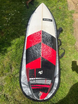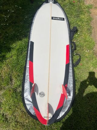 Se vende tabla de surf Gold Beach 6,2 de 35L hecha a medida, ideal para nivel principiante-intermedio. Sin reparaciones estructurales (solo marcas normales de uso) Perfecta para olas pequeñas y medias, muy divertida y fácil de llevar. Se vende por falta de uso. Se regala funda de transporte, invento y grip.