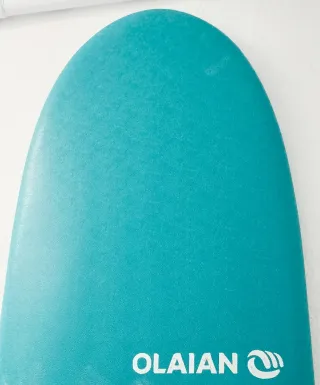 Tabla de surf OLAIAN de color turquesa, ideal para iniciarse en el surf. Diseñada para facilitar el aprendizaje y la diversión en el agua. - Color turquesa. - Marca OLAIAN. - Diseño para principiantes. Tabla+ leash negro+ funda+ correa porta tabla.