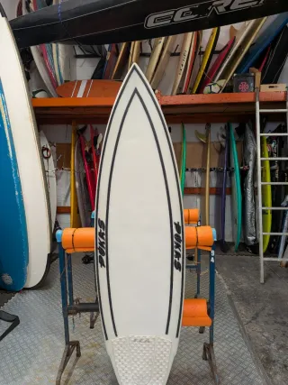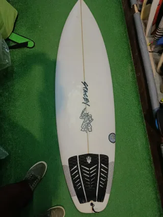 Tabla de surf Stacey(ha shapeado en pukas) en 5.1117 pulgadas con 30.6 litros de volumen. alguna pequeña reparación pero estado general es bueno. Con cajetines fcs2. Pasate a verla y tú decides - Marca: Stacey - Medida: 5'11 - Volumen: 30.6 Litros