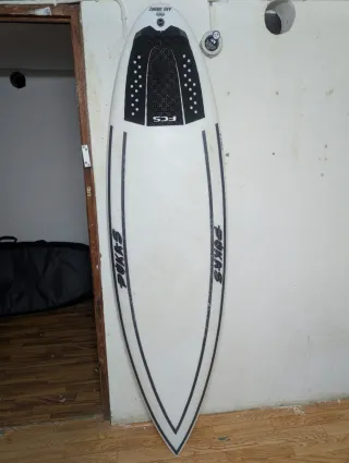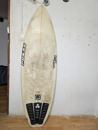Tabla de surf shortboard Pukas, shape “Peter Daniels”. Tabla rápida y maniobrable, ideal para olas pequeñas y medianas. Tiene señales normales de uso (amarilleo y marcas estéticas del tiempo) pero estructuralmente está sólida y lista para entrar al agua. Incluye grip trasero en buen estado. Perfecta como primera tabla corta o para tener una opción ágil en el quiver sin gastar mucho. Se vende por no usar. Precio negociable. - Marca reconocida en el mundo del surf.