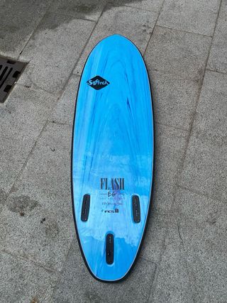 Tabla de surf Softech Flash de 5 pies y 7 pulgadas. . - Volumen de 35 litros. - Diseño llamativo en color azul. - 2 quillas FCS 2 incluido El modelo exacto se llama Éric Geiselman Flash de Softech. En este modelo es normal que el parte superior aparece así después de poco uso, puedes verla en persona en Coruña🙂
