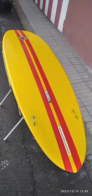 Tabla 6.8 y 44,5 litros, una minimalibú de calidad, ligera, de fácil remada y que coge olas con facilidad. La recomendaría como primera tabla de fibra o para alguien que busque un surf tranquilo en el que disfrutar el recorrido por la pared sin grandes maniobras. La tabla está perfecta y tan sólo tiene una reparación (realizada en La Rampa) en el tail por un rascazo. Está "perfecta".