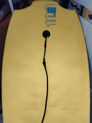 Tabla de surf de 42 pulgadas con aletas nuevas incluidas. Ideal para disfrutar del mar. - Color amarillo. - Cuerda de sujeción negra.