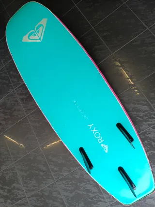 MAS REBAJADA ...!!!. Se vende Tabla de Surf de Espuma Roxy de 6.6. MUCHO VOLUMEN, ideal para empezar. Con bastante uso pero todo bien en lo general. Con quillas. Tabla de surf de espuma Roxy de 6 pies y 6 pulgadas. Ideal para iniciarse en el surf. - Color rosa. - Material de espuma. - Quillas incluidas.Tabla de surf de espuma Roxy de 6'6 de largo. Ideal para iniciarse en el surf. - Color azul turquesa con borde rosa. - Logo de Roxy en blanco. - Medidas: 6'6 x 23 x 3 3/8. - Tres quillas negras.