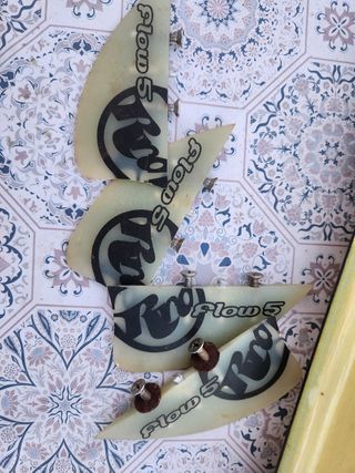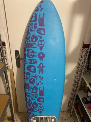 Tabla de surf con un diseño único y detalles artesanales. - Diseño con motivos geométricos y tribales. - Base con pads de agarre de diferentes colores y texturas. Tapones de las quillas reforzados Y con un pequeño toque en la punta nada grave Medidas en foto Precio negociable