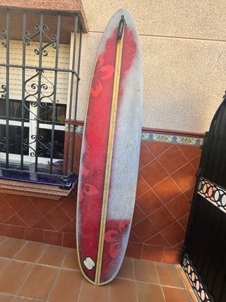 Tabla de surf South Surf Board en excelentes condiciones. Es una tabla de surf de aspecto clásico y elegante, con rayas rojas sobre un fondo blanco. c - Marca: South Surf Board Australia - Diseño clásico con rayas rojas - Ideal para principiantes o para decoraciónon soporte de pared incluido