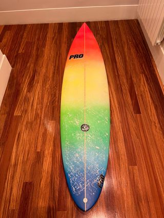 Gun Prosurf de 7.4 pies con 4 baños. Como nueva. Ni pisadas, ni bollos ni toques. Impecable. Alma gorda para mejor resistencia. Diseño versátil tanto para ola con masa como ola mas tubera. Tapones de FCS 1. Thruster o quad. Pintada, y así no amarillea con el tiempo.
