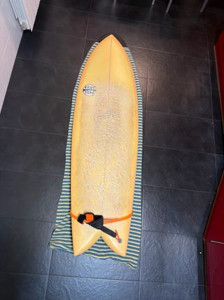 Tabla de surf tipo twin fin fish de 5 pies y 11 pulgadas. Ideal para olas pequeñas y medianas. - Diseño de twin fin. - Medida de 5'11. - Estilo fish. -Marca Full&Cass modelo seven, sello Frus Surf -Algun desconchado de pintura porque uso, por lo demas perfecto. -Se entrega con juego de 2 quillas Futures de la marca Koalition modelo Tween Keel Marble, invento GARA 6’ , y funda calcetín de Manual Boards. -Se entrega limpia, obviamente. -La vendo por cambio de tabla. solo entrega en persona precio negociable