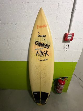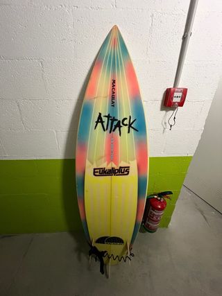 Tabla de surf Eukalyptus Attack clásica. Esta en perfectas condiciones para surfear, solo tiene imperfección en la punta. - Modelo: Eukalyptus Attack Macaulay - Características: 6” y 28L