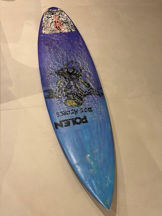 Tabla de surf Pukas, medidas: 5,7 - 18,72 - 2,32 - 25,72L La tabla tiene varias reparaciones en los cantos y la cola fue reconstruida por completo como se puede ver la en la foto.