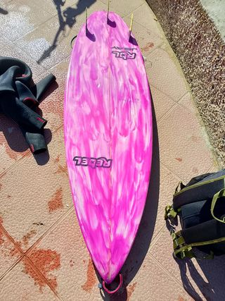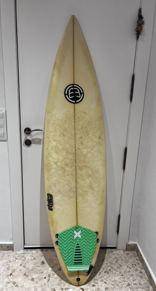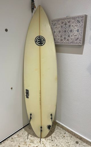 Tabla de surf de fibra-epoxy de alta calidad. La tabla ha flexado y ha sido reparada por profesional, por eso el precio. La vendo por cambio de quiver. 6'0. 33 Litros