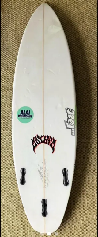Tabla de surf de la marca Lines. 6.0 X 19 3/4 X 2 11/16 con 33,2 litros Tiene pocos baños. Un toque en el culo areglado con solarez y mal lijado por pereza. El toque se ve en la ultima foto.