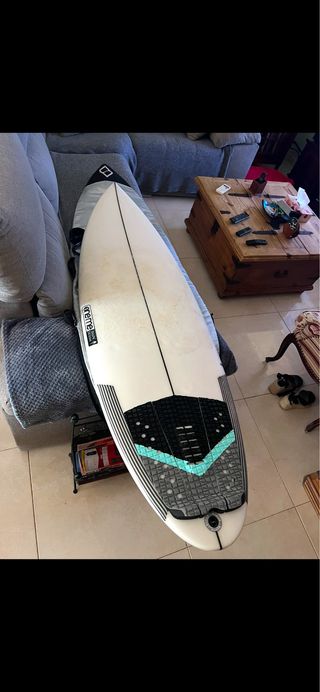 Tabla de surf AlMerrick * POD MOD Fish Al Merrick. * 5,6 x 20 3/8? x 2 1/2? 31,3 litros. * La tecnología Torq X-Lite aporta la ya innovadora construcción epoxy en áreas inimaginables en cuanto a peso y rendimiento. * En la cubierta de las tablas X-Lite se aplica una capa adicional de malla de protección resistente a los golpes, que distribuye la presión. * La parte inferior está provista de una tira de carbono resistente a la torsión. * Sin reparaciones ni abolladuras. Pequeños desperfectos en pintura * Funda a estrenar y Grip Chanel Island. * Quillas Feather Fins ultra light Es una tabla irrompible ideal para cambio a tabla corta