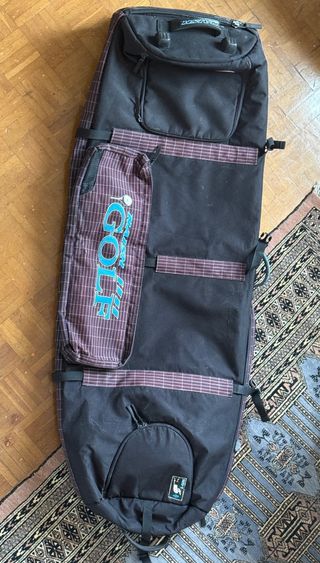 Funda de transporte para tabla de kite. Boardbag Naish Golf 135cm x 45cm +20 desplegables punta Para tablas twintip y strapless de surf Para viajar o llevar todo el materialde forma comoda. -bolsillos y separadores para tablas, cometas, killas, barra... -todas las cremalleras en buen estado -ruedas y asas en buen estado -buen estado general, sin desperfectos ni roturas. Se les llama Golf, por un acuerdo con las aerolíneas, donde no se cobraba el embarque de palos de Golf.