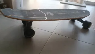 Tabla de surfskate Pyzel en perfecto estado. Ideal para practicar surf en tierra. Se ha usado sólo dos veces. (Me costó 330€) Este surfskate destaca por sus rockers de entrada y salida y un cóncavo muy marcado. Perfecto para ejecutar grandes derrapes y giros cerrados gracias a su wheelbase reducido de 17” y trucos aéreos en los que tus pies no se despegarán de la tabla. Montado con el sistema de ejes Meraki S5 y ruedas Ura de 65x55 mm 80A (medianas) para mayor precisión. Características: - Medida 33,5” - 17” de wheelbase - Ejes Yow Meraki S5 - Trail rocker