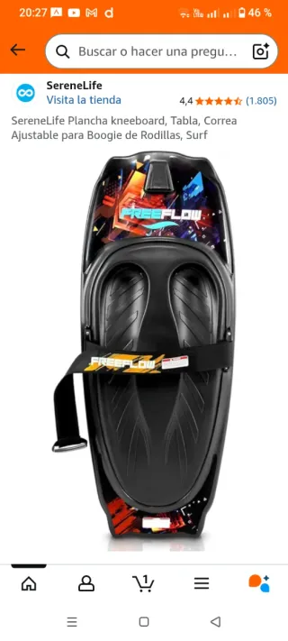 Tabla de Surf de rodillas ajustables marca Freeflow, ideales para deportes de deslizamiento. - Diseño ergonómico. - Correa ajustable para mayor sujeción. - Estampado llamativo en la parte superior. - Nueva a estrenar en su caja original