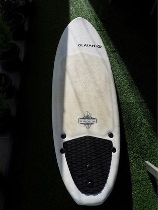 8.6, 90L. En muy buenas condiciones, tabla de iniciación, muy estable, la vendo porque me he comprado otra más pequeña. Se vende con leash y quillas, todo en muy buen estado. Se dispone de funda olaian para ella, consultar precio en pack aparte.