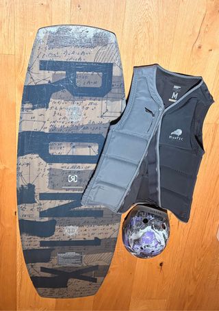 Pack de tabla de wakeboard Ronix y chaleco Mystic. - Tabla de wakeboard con diseño gráfico. - Chaleco de talla M con cremallera frontal.