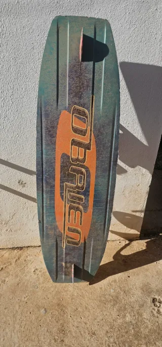 Tabla de wakeboard O'Brien de 55 pulgadas. Diseño llamativo en naranja y azul con gráficos. - Tabla de wakeboard O'Brien crow 55. - Botas Liquid Force. - Medida: 55 pulgadas. - Color: Naranja y azul. - Único propietario