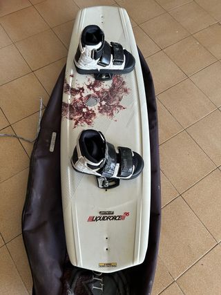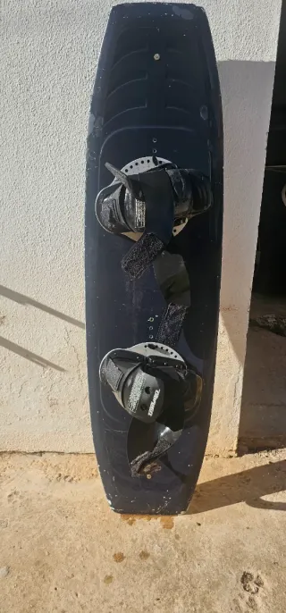 Tabla de wakeboard con fijaciones La tabla es de decathlon 150cm precio nueva 400€, tiene un pequeño golpe en una esquina pero solo es la laca la fibra está bien Las fijaciones son unas liquid force hook 6x, van con unos botines por dentro, precio nuevas 320€ Lo vendo todo completo