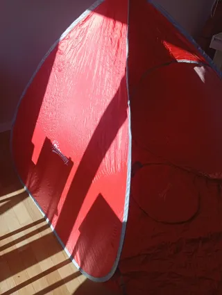 Carpa de playa Outsunny de color rojo, ideal para protegerse del sol.Esta sin estrenar.Ideal para la playa para protegerse del sol. Ideal para proteger a niños, mascotas.... - Diseño pop-up para un montaje rápido. - Incluye bolsa de transporte y piquetas. - Material resistente a la intemperie.