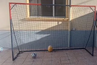 Portería de fútbol KIPSTA, ideal para entrenar con red de entrenamiento y 4 piquetas - Estructura metálica. - Red de nylon. - Color negro y rojo.