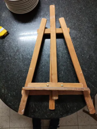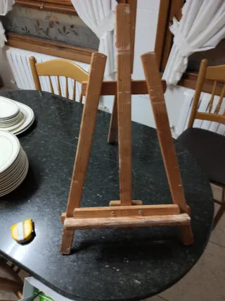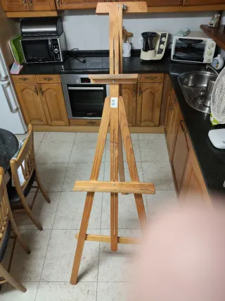 Caballete de madera de estilo trípode, ideal para artistas. - Construcción robusta de madera. - Altura ajustable para diferentes lienzos. - Diseño plegable para fácil almacenamiento y transporte. Regalo silla