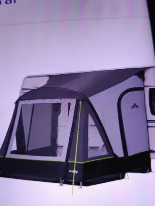Avance para autocaravana con diseño moderno y funcional. - Estructura de color gris y negro. - Ventanas amplias para mayor visibilidad. - modelo OBRLINK Río 320 Easy Air - medidas, Profundidad, 225 Altura, 240-280 Longitud, 320