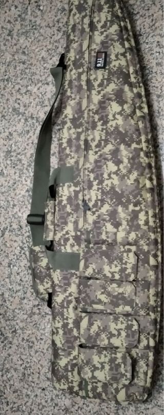 Estupenda funda para rifle, nueva a estrenar. Tiene un diseño de camuflaje y varios bolsillos. Ideal para transportar y proteger tu rifle. - Diseño en camuflaje - Múltiples bolsillos - Nueva