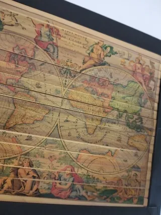 Lápices de colores decorativos de madera con diseño de mapa mundi.