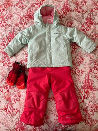 mono de esqui en dos piezas, talla 3 años, un solo uso. Manoplas de regalo.