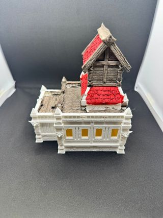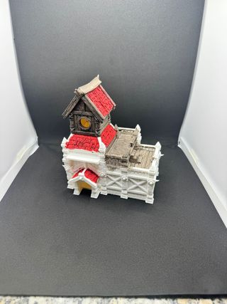 Cabaña tipo orco o bárbaro para juegos de rol. Escenografías. Ideal para tus partidas de juegos de rol. - Torre de dos pisos con tejado rojo. - Fabricada en plástico resistente. - Pintada con detalle y buen acabado.