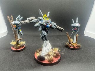 Miniatura de la Comandante Shadowsun de Warhammer 40k, completamente pintada a mano. Incluye dos unidades auxiliares. - Figura de resina de alta calidad.- Está en perfecto estado, lista para jugar.- Pintado con gran detalle y precisión. - Ideal para coleccionistas o jugadores.