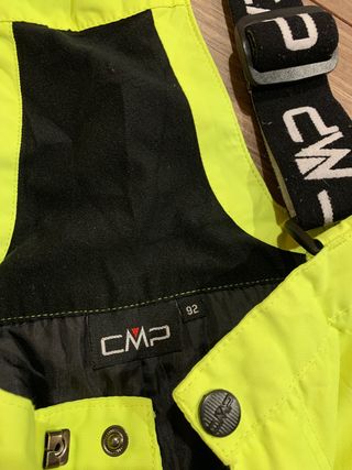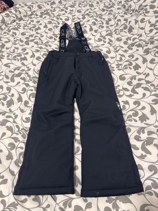 Pantalón de esquí infantil de la marca CMP. Ideal para disfrutar de la nieve con comodidad. - Tirantes ajustables. - Bolsillos laterales. - Tejido resistente. Solo se ha utilizado en un par de ocasiones. Tiene un pequeño enganche en la parte inferior del pantalón.