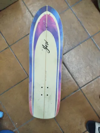 Surfskate YOW con un diseño llamativo y colorido. - Diseño con degradado de colores morado, rosa y azul. - Logo de la marca YOW en la parte superior. - Agujeros para la fijación de los ejes.
