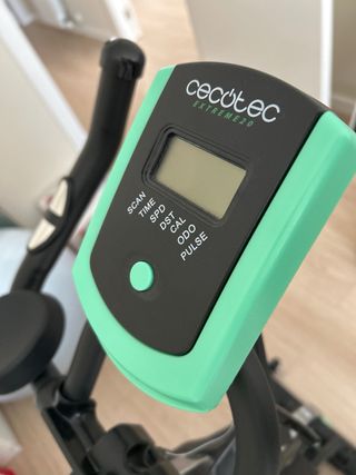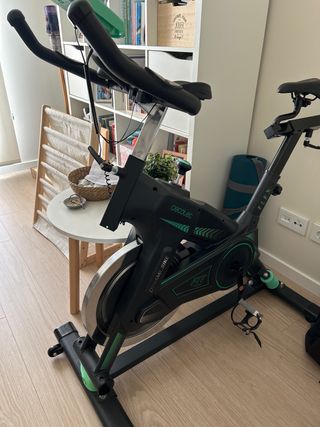 Bicicleta estática Cecotec modelo Flex. - Diseño moderno en color negro con detalles en verde. - Manillar ergonómico. - Sillín ajustable. - Pedales con agarre. - Indicador velocidad, distancia, pulsaciones *Viene sin pilas