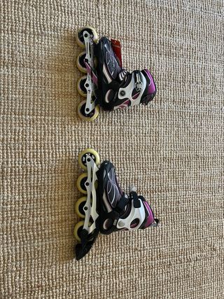 Patines en línea marca Oxelo, negros y retoques rojos, ideales para iniciarse al patinaje en línea. Número del 29 al 32, se extienden. Buen uso, solo usados un año,com ralladuras exteriores però el interior està en muy buen estadi. - Diseño en color negro con detalles en rojo. - Cierre de velcro y cordones para un ajuste seguro.