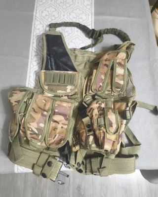 Chaleco táctico tipo Swat Multicam. - Múltiples bolsillos y compartimentos. - Cinturón ajustable. - Cierre de cremallera. - Pistolera. - Incluye correa de 1 punto. - Pouch doble para 2 cargadores.