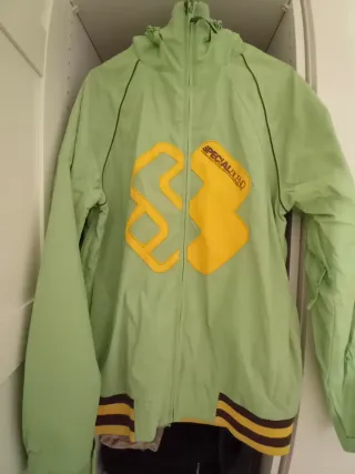 Chaqueta y Pantalón snow SPECIAL BLEND TALLA "S" totalmente nueva. - Puños de las mangas y cintura con rayas marrones y amarillas, elastano, cremalleras,cierres en perfecto estado. - Capucha integrada. - Pantalón y chaquetas ligeras, transpirables. Estado de las prendas perfectos.