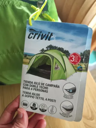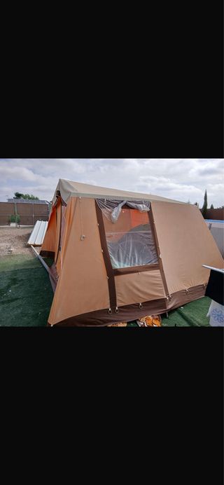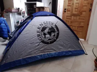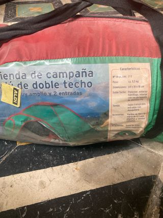 Tienda de campaña con doble techo, ideal para tus aventuras al aire libre.Esta sin estrenar. Como puede verse en las imágenes. - Interior con puerta. - Avance. - Poliamida aluminizado impermeable. - Algodón polarmida transpirable. - Con mosquitera.La tienda de campaña la compre para mi hijo pero la tube que guardar en un trastero durante 2 años y ahora dice que lla no la quiere