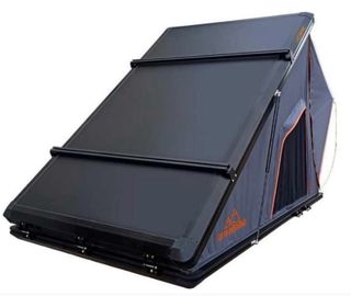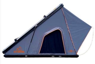 Tienda de campaña diseñada para instalar en el techo de un coche. - Color gris oscuro. - Detalle de logo naranja 'GO TO OVERLAND'.