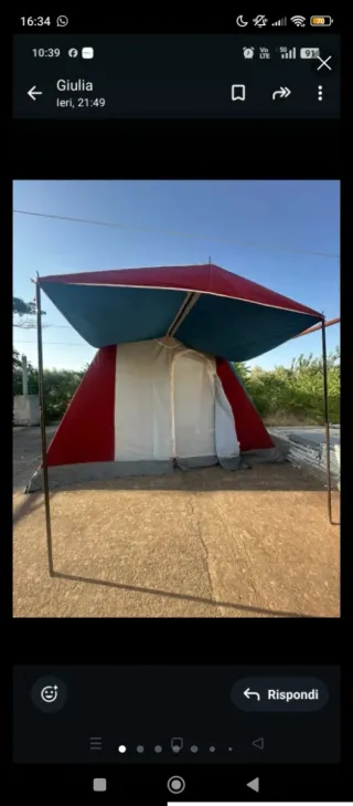 Tienda de campaña para usar como cocina o espacio adicional en camping. - Estructura de postes metálicos. - Lona de tela resistente. - Diseño abierto con techo. hierros y lona sin rotos cremalleras funcionando