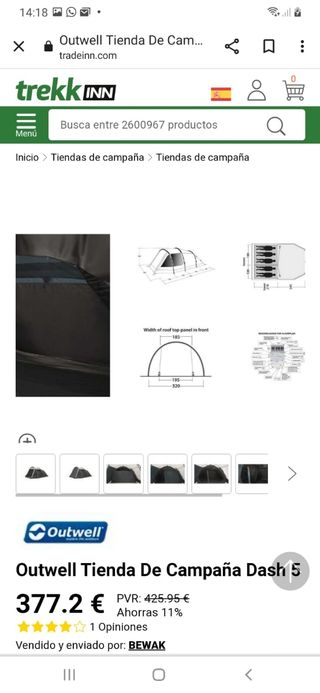 por mudanza !! la tienda de campaña es una pasada, esta como nueva. tamaño FAMILIAR. con varios conpartimientos. - Capacidad para 5 personas - Tienda tipo Túnel con dos puertas de acceso con mosquitera - Doble techo Outtex 6000 Pro (100% poliéster oxford tafeta) con costuras selladas - Protección UPF 50+ - Las dos habitaciones se puede hacer una sola recogiendo el visor de separación - Fabricado con material Ignífugo - Columna de agua techo 6000 mm - Suelo impermeable con doble recubrimiento 100% Polyethileno - Suelo cosido para evitar la entrada de agua y insectos - Bolsa para su transporte con ruedas !