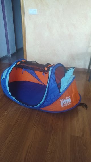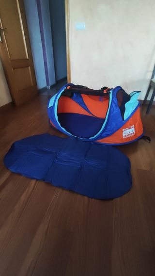 Preciosa tienda de campaña para bebé, ideal para viajes o para usar en casa. Se encuentra en muy buen estado. - Incluye colchón a juego. - Fácil de montar y desmontar. - Perfecta para que el bebé descanse de forma segura y cómoda. Medidas: Alto 50cm Largo 90cm Ancho 50cm