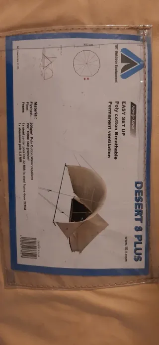 Tienda de campaña estilo tipi, modelo Desert 8 Pro para 8 personas. Ideal para camping y actividades al aire libre. - Diseño espacioso y robusto. - Material resistente a la intemperie. Solo usado una vez. Esta en un nuevo estado. Precio nuevo en una tienda: 511,99 Euro. Solo recojer en Alicante, no puedo enviar!