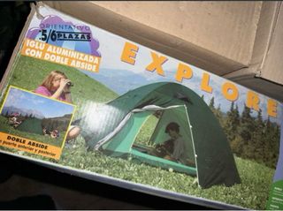 Tienda de campaña Iglu aluminizada, ideal para camping y actividades al aire libre. Con doble absis para mayor comodidad. - Capacidad: 5/6 plazas. - Modelo: Iglu. - Material: Aluminizada. - Característica: Doble absis (puerta anterior y posterior). - Estado: Sin estrenar. Nunca se ha abierto la caja