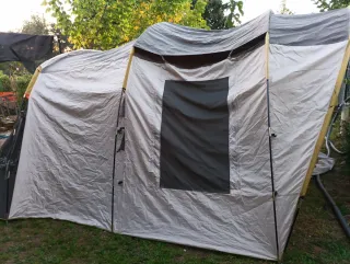 Preciosa tienda de campaña tipo remolque Comanche, marca Trigano modelo Camplair (junio 2023), ideal para acampar con comodidad 4 personas. Se encuentra en muy buen estado, com nueva, con muy poco uso. - Diseño tipo medio tubo para una mayor amplitud. - Tejido resistente y duradero. - Fácil de montar y desmontar.